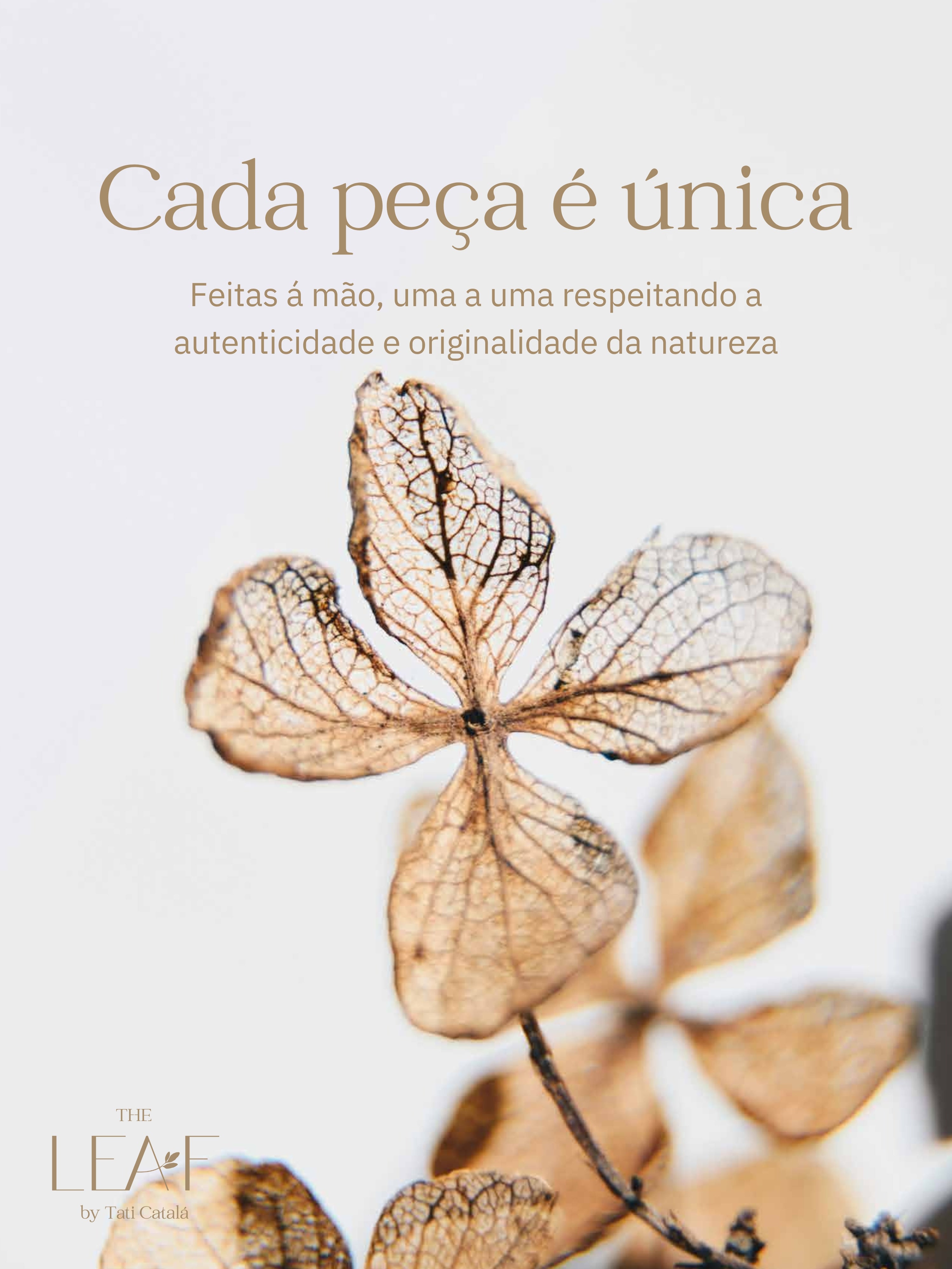 A marca THE LEAF transforma elementos da natureza em jóias. Joias que nascem da natureza e ganham vida nas mãos da artista Tati Catalá. Feitos à mão com amor e propósito. ✨ Único como você. 🌱 Sustentável, artesanal, atemporal. 💚 Vista arte. Vista natureza. Vista THE LEAF