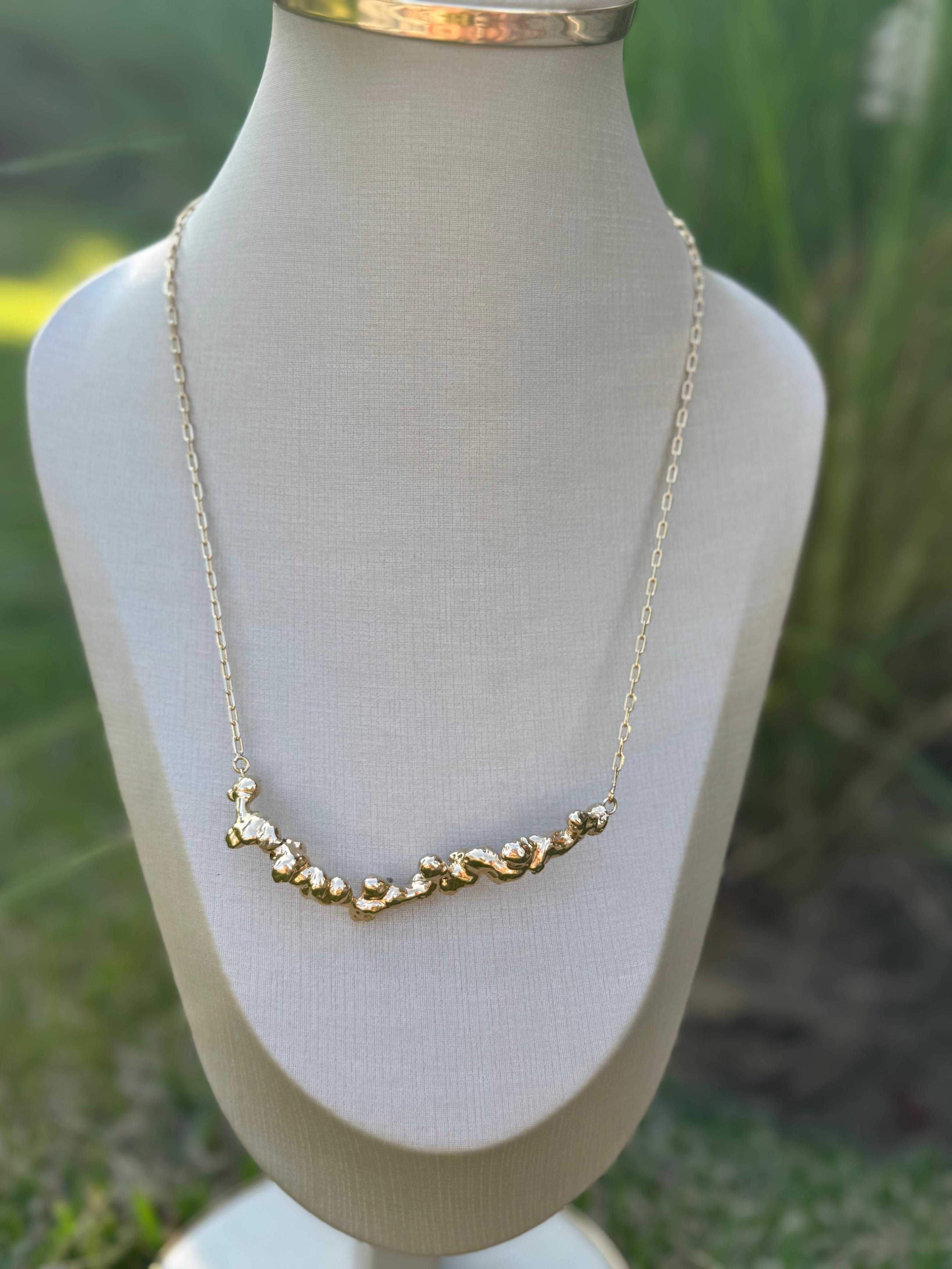 Esta biojoia única, com banho de ouro 10MM, é feita a partir de materiais naturais cuidadosamente selecionados, como sementes, madeiras nobres ou fibras vegetais, e finalizada com um acabamento em ouro 10MM que realça sua beleza orgânica.