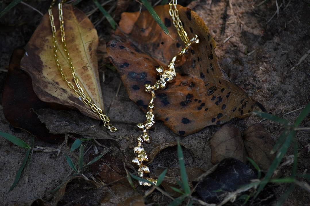 Esta biojoia única, com banho de ouro 10MM, é feita a partir de materiais naturais cuidadosamente selecionados, como sementes, madeiras nobres ou fibras vegetais, e finalizada com um acabamento em ouro 10MM que realça sua beleza orgânica.