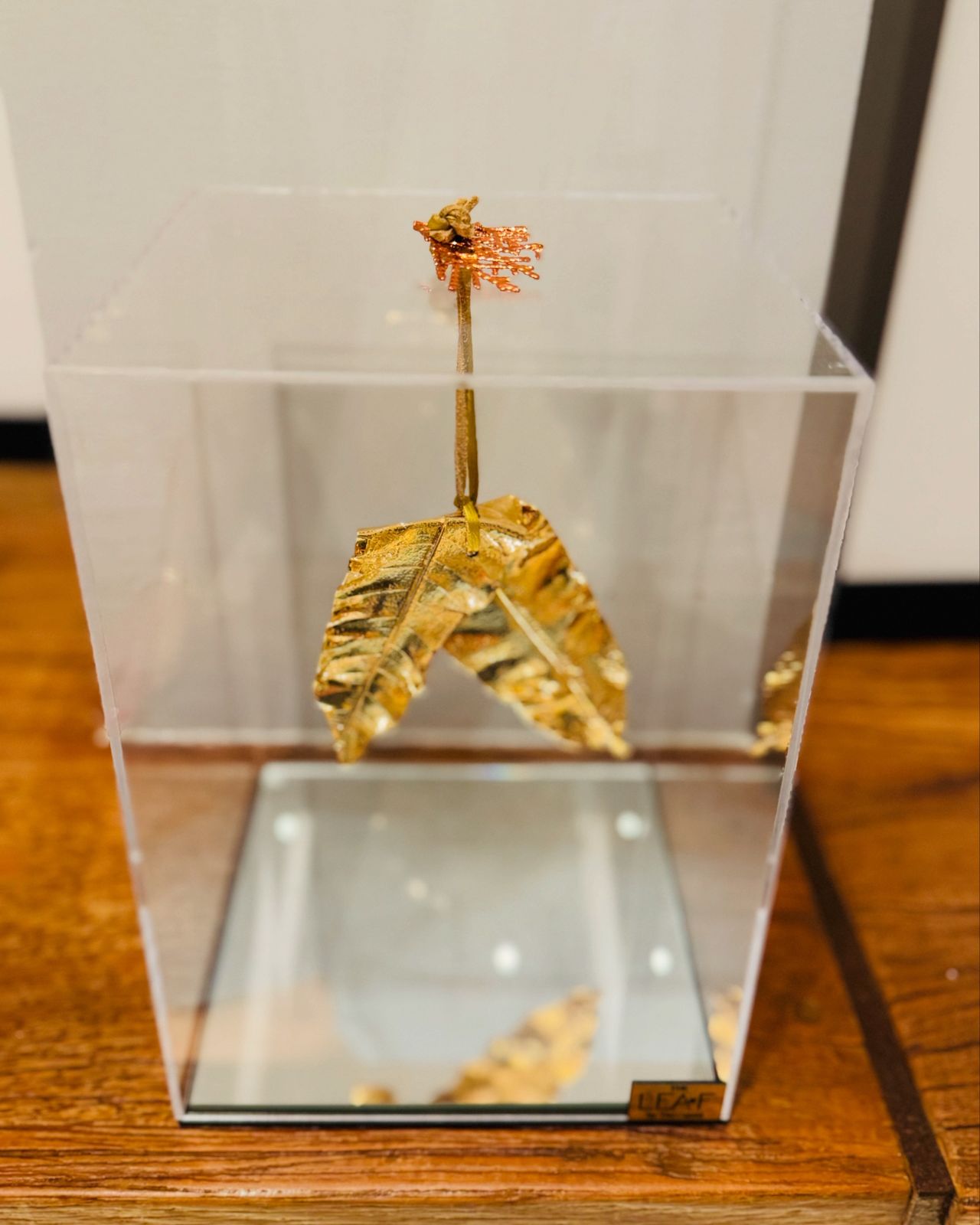 Essa peça decorativa única é feita a partir de folhas de mangueira naturais, cuidadosamente tratadas e trabalhadas à mão para preservar sua textura e beleza orgânica.
